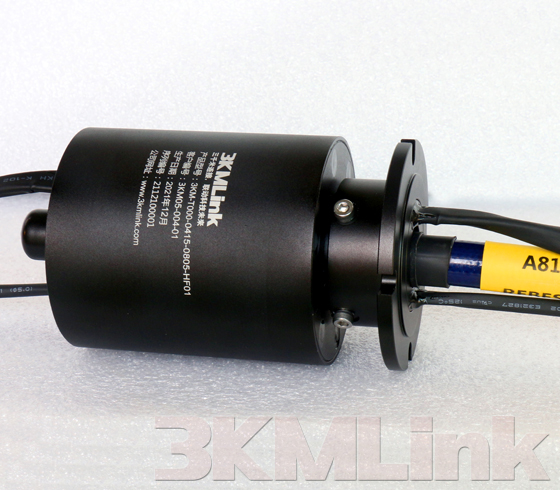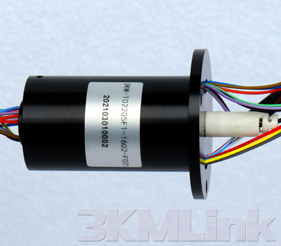 3KM T-series slip ring is designed with a through hole for shaft mounting, the through hole sizes are from 12.7mm to 124.6mm. it could be applied to transmit power, signals, RF, gas and fluid when the devices require 360° rotating.
